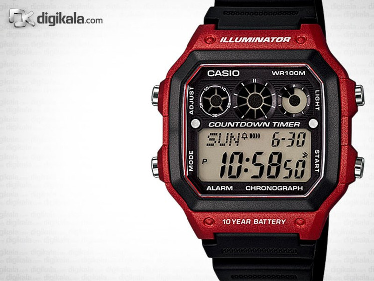 نمایش 24 ساعته , نمایش ساعت دوم , تاریخ شمار , نور پس زمینه , تایمر , آلارم , کرنوگراف , ضد آب