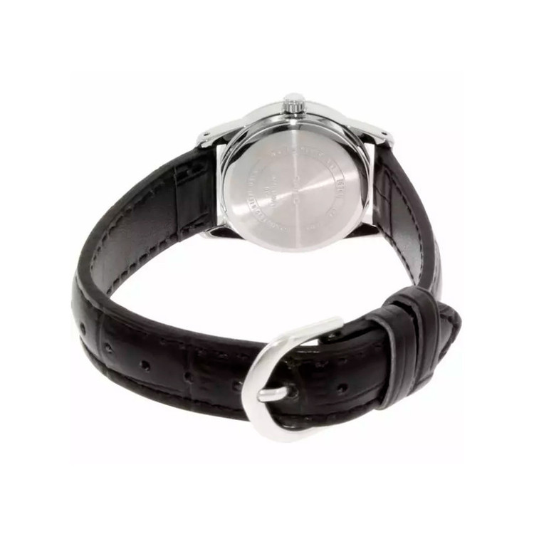 - ساعت عقربهای مچی زنانه - مقاوم در برابر آب تا عمق 30 متر - جنس بدنه تهیه شده از استیل ضد زنگ - دارای بند چرمی طرح دار
